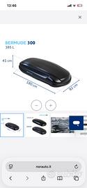 Vendo causa inutilizzo. Box da tetto Bermude 300 385L Comprato da NORAUTO (289,99€) l’anno scorso. Tutti gli accessori originali e le chiavi, sono presenti. Si può montare sulle tue barre da tetto. Ci sono un po’ di graffi dovuti all’uso sulla parte superiore. Ma tuttavia, non si notano guardandoli quando è sopra dell’auto. L’interno è molto pulito. [[ ATTENZIONE ]] *Consegna solo a mano Torino, verso centro. *Mi spiace, il prezzo non è trattabile. *Non scambio. (Nessun commercio tramite il sistema del baratto) *Pagamenti: Contanti / Satispay / Paypal ###
