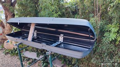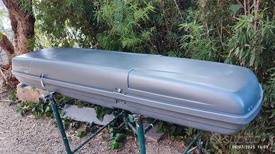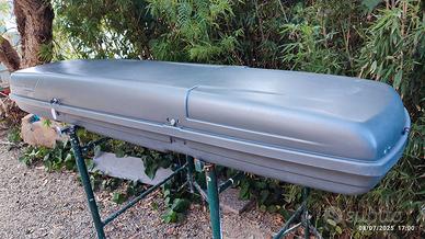 BOX baule per barre portapacchi grande 225x50xh30 XL , 2 serrature di chiusura , in buono stato di conservazione senza crepe o anche solo venature, perfettamente funzionante, colore grigio un poco scolorito dal sole, una chiave per le due serrature. Distanza degli attacchi per le barre 86 cm. Trasporto da concordare secondo la distanza da Imperia, gratuito nel raggio di 30km. ASTENERSI DA RICHIESTE DI CONTATTO AL DI FUORI DELLA PIATTAFORMA.