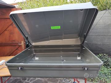 Box baule per auto usato, in ottimo stato. Misure: lunghezza cm 110 - larghezza cm 100 - altezza 30 cm anteriore - 40 cm posteriore. No spedizione. Ritiro in loco.