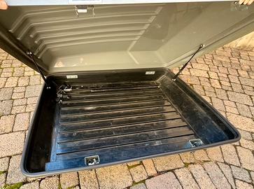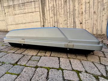 Vendo come da foto baule in buono stato, con ganci, universale (non le staffe da tetto) Dimensioni 130 lunghezza, 90 larghezza, 35 altezza (400 litri)