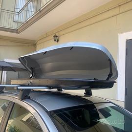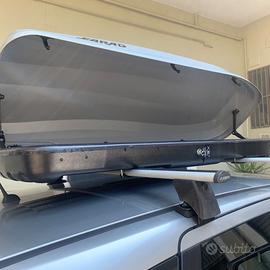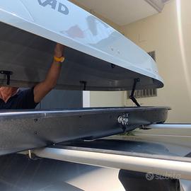 Vendo box contenitore per tetto auto marca Farad 530lt misure 200x80 colore grigio metallizzato, apertura entrambi i lati. Usato solo 2 volte come nuovo, completo di staffe in alluminio.Prezzo leggermente trattabile