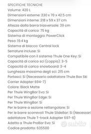 Force XT Alpine Box da tetto usato un mese in ottime condizioni Doppia apertura Dimensione esterna: 230X70X42.5 Dimensione interna: 218X59X37 Litri 420