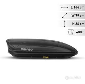 vendo box da tetto auto, come nuovo usato una sola volta ,MENABO MARATHON Dark 400 litri, non spedisco ritiro in zona
