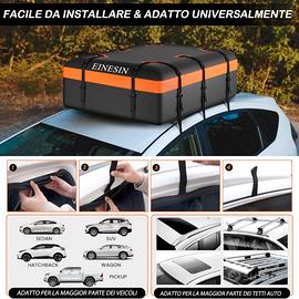 Il design universale permette il montaggio su automobili, SUV e veicoli familiari sia con portapacchi sia senza barre, grazie al sistema di fissaggio con ganci per portiere e cinghie regolabili di rinforzo. Questo consente di sfruttare al massimo lo spazio disponibile senza compromettere l’aerodinamica del veicolo.