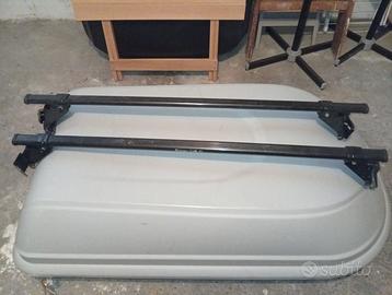 vendo box da tetto bauletto con 2 chiavi e barre porta pacchi usato 1 volta misure lunghezza 1,30 metro. Larghezza 80cm a 70 euro trattabili