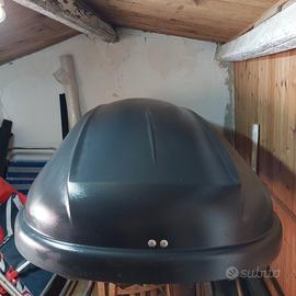 Box da tetto per auto che aggancia su qualsiasi barra portatutto modello bermude 4100 commercializzato da norauto usato poco misure lunghezza circa 1,60 larghezza circa 0,70 disponibile nel comune di Pachino (SR)