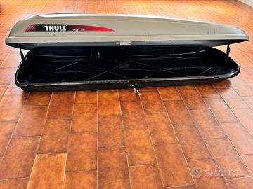 Box da tetto auto Thule polar 700 in buone condizioni. Capienza 440 litri circa Dimensioni: • Lunghezza 232 cm • Larghezza 70 cm • Altezza 37 cm.