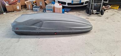 A Castel D' Azzano (VR) , vendo a 120 euro Box da auto in ottime condizioni con piccole imperfezioni + più barre di sostegno. Marca del baulotto: G3 Italy ; colore Dark Grey; lunghezza 1930 mm; larghezza 740 mm ; capacità 390 lt.; peso netto 15 kg; peso lordo 19 kg: Carico massimo 75 kg; apertura : right side con sollevatore a molla; Da ritirare in sede a Castel D' Azzano (Verona). NON si spedisce. Si specifica che le piccole imperfezioni non compromettono la qualità e la funzionalità del prodotto.