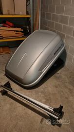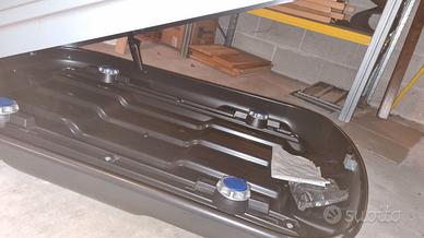 Il box dispone di attacchi regolabili sulla base, che permettono di montarlo su diverse tipologie di barre portatutto, grazie alla regolazione della posizione dei punti di fissaggio.