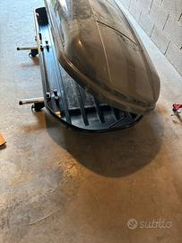 Vendo per inutilizzo box da tetto con varre menabo. Per informazione, era montato su una kia sportage