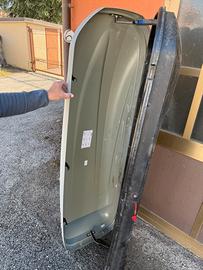 Vendo box da tetto integro come in figura. Con agganci per barre auto porta bagagli. Dimensioni: - lunghezza 190cm - larghezza 65cm