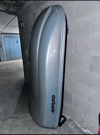 Causa inutilizzo, vendo box da tetto Farad dimensioni 160X80X40 usato poche volte. Nella parte alta ha una strisciata ma è perfettamente funzionante.