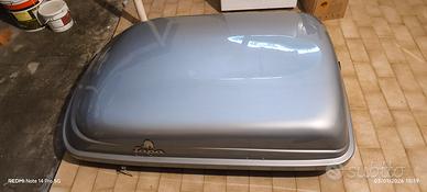vendo box tetto auto , usato pochissime volte. Non rimane aperto ha ammortizzatori scarichi sarebbero da cambiare ma per il resto nonostante abbia 30 anni è completamente nuovo. prezzo trattabile