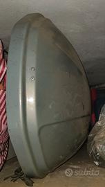 come da titolo vendo box per auto da tetto universale 450 litri, compreso di strepp aggiuntive di sicurezza con chiavi di chiusura tettuccio più agganci.