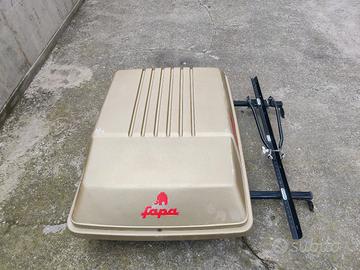 Vendo box da tetto per auto con barre portatutto e portabici, usato ma in buone condizioni.
