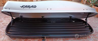Box da tetto auto "Siluro" Farad ,dimensioni 190x80x40 , volume 480 litri, carico max per auto 75kg per caravan 90kg, 2 chiavi, chiusura centralizzata, doppia apertura, sistema di fissaggio alle barre quickfix senza bulloni agganci rapidi, come nuovo usato pochissimo e tenuto sempre al riparo , solo ritiro in zona Centocelle