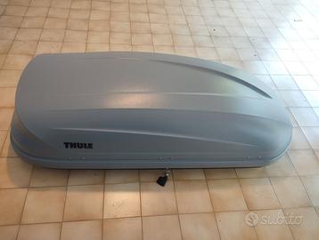 Vendo per inutilizzo dopo acquisto auto nuova più capiente.. Usato solo in due viaggi. Con una capacità interna di 410 litri e una lunghezza di 175 cm, è ideale per trasportare valigie, attrezzature sportive o bagagli extra per una famiglia di 3-4 persone. La taglia M si adatta bene alla maggior parte delle auto, station wagon e SUV. L’apertura è singola, sul lato destro: una soluzione semplice e sicura per il carico e lo scarico. Il fissaggio sulle barre portatutto avviene tramite il sistema brevettato Fast-Grip: con solo pochi giri del pomello interno si blocca saldamente il box. Tutte le operazioni si eseguono direttamente dall’interno del box, senza attrezzi. Compatibile con barre portatutto larghe fino a 90 mm (tonde, ovali, rettangolari). Perfetto con barre portatutto Thule e Nordrive. Il coperchio si apre facilmente grazie agli ammortizzatori a molla Dual-Force, che semplificano apertura e chiusura anche con una sola mano. Il sistema di chiusura centralizzata garantisce la massima sicurezza: la chiave può essere estratta solo se tutti i punti sono bloccati correttamente. CARATTERISTICHE TECNICHE Capacità interna: 410 litri Dimensioni esterne: 175 x 82 x 45 cm Taglia: M Apertura: laterale destra Sistema di fissaggio: Fast-Grip integrato Portata massima: 50 kg Peso a vuoto: circa 14 kg Sistema di chiusura: centralizzata con chiave di sicurezza
