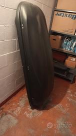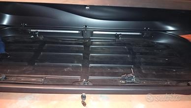Capienza ideale da 430 litri: Box tetto auto con capacità di 430 litri, perfetto per chi cerca spazio extra per sci, attrezzatura o bagagli. Robusto e spazioso, è una scelta ottimale per ogni tipo di viaggio. Il box auto da esterno assicura protezione contro intemperie e raggi solari. Il portapacchi auto tetto è l’accessorio pratico e funzionale per trasportare carichi extra in completa sicurezza su strada.