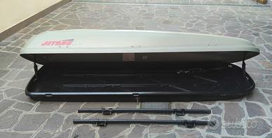 box per tetto auto usato solo per 3 estati e poi sempre riposto in garage, perfettamente funzionante e non presente rotture.