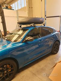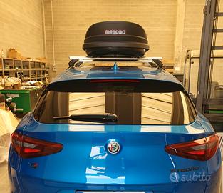 vendo Box 320lt più barre per Alfa Romeo Stelvio. il Box e le barre sono praticamente nuove usato solo una estate per 15 GG.