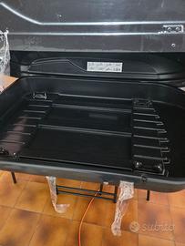 Box usato una sola volta. Perfetto come nuovo. Universale per tutte le auto. Capiente e pratico, cedo completo di barre,agganci chiavi e tutti gli accessori. Lunghezza 140 larghezza 70.barre regolabili. Prezzo affare a causa di non utilizzo. Possibilità consegna gratuita in Sicilia