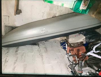Box con chiave e attacchi per barra porta tutto, pistoncini nuovi e capienza ottima. Dimensioni: lunghezza cm 220, larghezza cm 63, altezza cm 32. Box adatto anche come porta sci.Solo ritiro in sede, non spedisco.