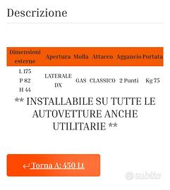 per inutilizzo, vendo box portatutto per auto. compatibile con tutte le barre portatutto (non comprese) capacità 520 LT. ottimo come porta sci e porta scarponi (io riuscivo a caricare 4 paia di sci, i caschi e 4 paia di scarponi compresi di sacche) dimensioni in foto.