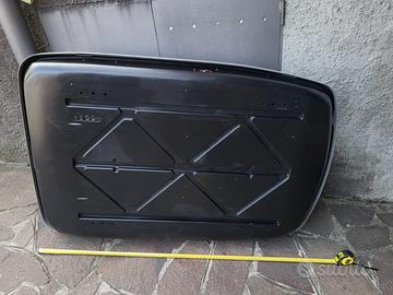 Box portatutto per auto. Usato e in ottime condizioni. >>Meccanismo di apertura assistita Dual-Force con ammortizzatori. >>Chiusura centralizzata 2 punti. >>Materiale altamente resistente agli impatti con speciale trattamento protettivo dai raggi UV. >>Dimensioni esterne: 139x90x42 cm. >>Dimensioni interne: 133x83 cm. >>Capacità: 330 lt. >>Portata: 50 kg.