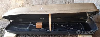 Vendo box portatutto per auto misure cm 225x70x35. Colore ocra la parte superiore, nero sotto. Capienza 480 litri.