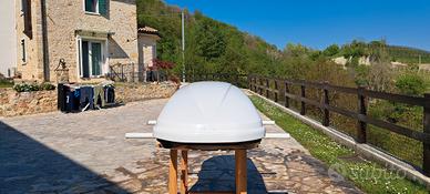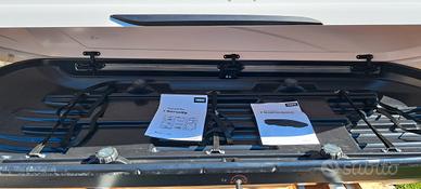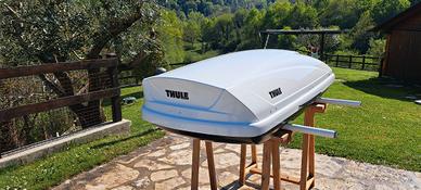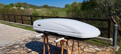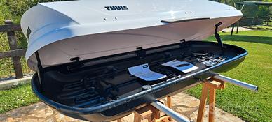 Vendo box portatutto per auto marca Thule, modello Motion 800, colore bianco, misure 205x84x45 circa. Apertura da ambo i lati, peso 18-20 kg circa, portata massima 75 kg, circa 500 litri. Lunghezza massima sci/snowboard interni 190 cm. Dotato di 3 chiavi, cinghie ancoraggio interne, veloce da agganciare alle 2 barre portatutto. Eventualmente disponibili in vendita anche le 2 barre portatutto con portasci ma su misura di BMW 320 touring E91.