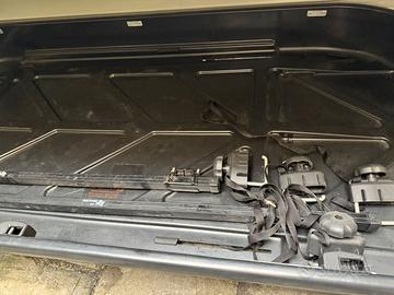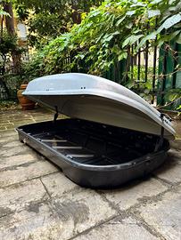 box tetto 500l, baule portatutto auto, portapacchi auto, GEV, thule modula g3 menabò, box da tetto usato, barre portatutto incluse, porta sci campeggio vacanze