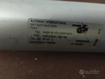 Box da tetto per auto con chiusura a chiave Lungo 190 cm largo 75 cm e alto 40 cm con barre portatutto universali Automaxi Railing Silver 190 (sprovviste di attacco auto, da acquistare a parte) provviste di chiave. Ritiro a Bagni di Tivoli.