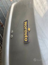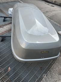 Vendo box da tetto modello Bermude 460, capiente (circa 460 litri), ideale per viaggi e trasporto bagagli. Colore grigio, usato ma in buone condizioni. Si monta su barre portapacchi standard. Perfetto per vacanze, sci o lunghi viaggi. Segni di normale utilizzo (come da foto). Ritiro a mano consigliato per dimensioni.