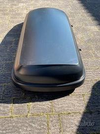 Box per tetto auto 340 litri avente le seguenti dimensioni: Lunghezza 190 cm, larghezza 75 cm, altezza 39 cm, in ottime condizioni, usato pochissimo, comprensivo di nr.2 barre porta tutto di marca Thule di lunghezza 122 cm.
