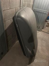 Vendo per inutilizzo box contenitore da tetto universale per auto furgoni camper van. Colore grigio scuro. Tanti litri e quindi spazio a disposizione come un bagagliaio per riporre borse valigie e tutti gli oggetti. Si adatta ad ogni tipo di veicolo.