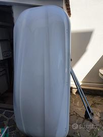 Box tetto auto (casa produttrice Junior Casale Monferrato) usato ma perfettamente funzionante e in buono stato. Vendo causa cambio necessità per passaggio a box più piccolo. Estremamente capiente e solido: - volume capienza oltre 400 litri (ho tranquillamente caricato fino a 6 borsoni unitamente a 2 paia sci)