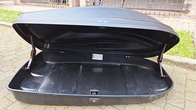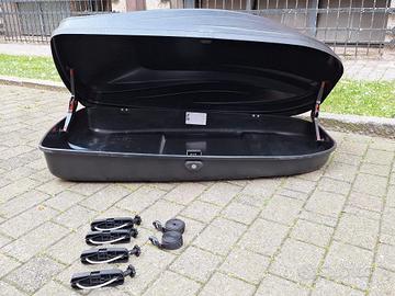 Box tetto auto G3 da 240 litri. Colore nero. Usato e completo di attacchi, cinghie e doppia chiave originale.