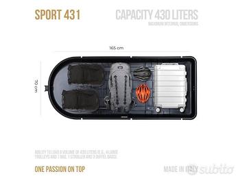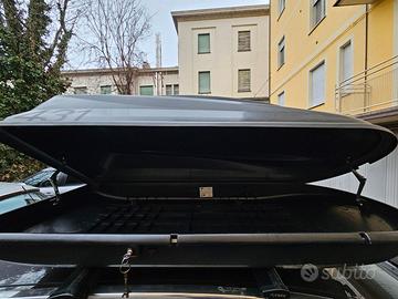 Vendo box tetto come da oggetto. Usato ma ancora integro e funzionante. Solo box no barre. Consegna solo a mano ed a Parma.