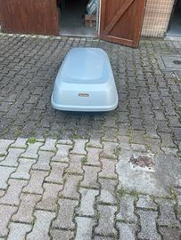 Vendo box per tetto macchina. Modello standard. Vanno comprate le barre e lui va su tutti i modelli. Ho 2 coppie di barre che usavo nel Golf e quelle le regalo ma bisogna capire se vanno bene su alcuni modelli di Auto. Valore box da realizzare simbolico 40€ Usato 2 volte per andare in ferie e poi riposto in garage. Ritiro da concordare in zona