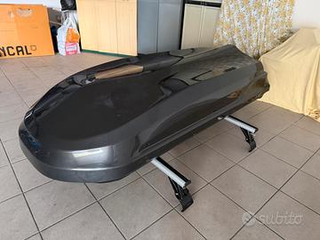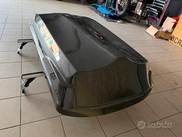 Box tetto auto della fabbri da 430lt con barre portatutto portapacchi universali della prealpina , consegno due barre, una da 115 ed una da 105 in modo che si possano montare su tutte le auto, quelle da 115 son state montate una sola volta pagate 250€.