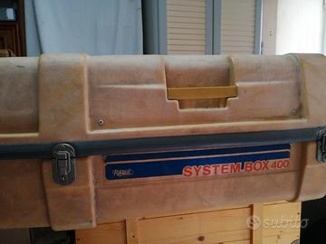 Propongo box da tetto (portapacchi, baule) da circa 400 litri modello SYSTEM BOX 400 Ra... Dimensioni 120x40x90 cm. Capienza ampia, ideale per viaggi, valigie, attrezzature. Struttura in plastica resistente. Apertura e chiusura funzionanti. Buone condizioni generali con normali segni del tempo. Prezzo 90,00 euro trattabili. Ritiro a mano sul posto.