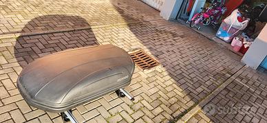 box tetto auto Menabo Marathon 320 con doppia chiave più barre portatutto in alluminio, pari al nuovo.