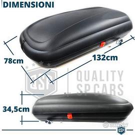 Baule, Box Tetto Auto d'Eccellenza Per FORD, EffettoFibra di Carbonio, Omologato e Certificato TÜV (Ente di controllo Tedesco),MADE IN ITALY Prodotto dal Design Curato che non Pregiudica l'Estetica o la Sportività delVeicolo sul Quale Viene Installato. - Certificazioni di Qualità e sicurezza TÜV - Eccellenza dei Materiali "Dettagli/Tatto" - Aerodinamica e Resistenza Alle Intemperie Testata - Facilità di Carico Laterale assistita (Sollevatori a Molla) - Antifurto Sistem (Chiusura a Chiave + Installazione dall'interno) - Installazione FACILE COMPATIBILITÀ: - Per vetture FORD con Barre Portatutto già Installate - FORD B-MAX / C-MAX / S-MAX - FORD ECOSPORT - FORD EDGE - FORD FIESTA - FORD MONDEO - FORD FOCUS - FORD FUSION - FORD KA - FORD GALAXY - FORD PUMA - FORD MUSTANG E' Prodotto in Polipropilene ad Iniezione, un Materiale ad ALTO PREGIO delSettore, Per questo Motivo ha un ELEVATISSIMA RESISTENZA agli AgentiAtmosferici ed Escursioni Termiche, inoltre lo Rende Ermetico anche allasemplice Umidità, Quindi permettendo di Inserire all'Interno QualsiasiTipologia di Merce. MONTAGGIO: - Posizionare il Box Tetto Sulle Barre Portatutto del Vostro Veicolo - Alla Base del Box, Forare con un Cacciavite nei punti già predisposti, inCorrispondenza delle Vostre Barre - Inserire le Staffe ad "U" dal Basso Verso l'Alto FacendoAttraversare il Box - Avvitare con i Perni Forniti in Dotazione dall' Interno del Box DETTAGLI TECNICI: - Materiale: Polipropilene a Iniezione - Colore: Carbonio Nero - Finitura: Traslucida - Peso: 11Kg - Dimensioni: 132Cm x 78Cm x 34,5Cm - Potenziale di carico: 55Kg - Capienza di Carico: 320Lt - Confezionamento: Cartone Originale - Certificazioni e Omologazioni: TÜV PER INFO CONTATTARE AL 3927091031 ANCHE LINEA WhatsApp CONSEGNA: - Effettuiamo Spedizioni 24-48H in TUTTA ITALIA - Ritiro in Sede con possibilità di visionare il Prodotto PAGAMENTI: - PayPal - Con Carta - Bonifico Bancario