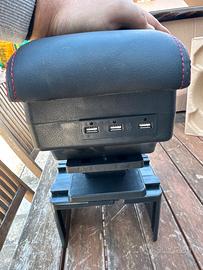 Vendo braciolo per renault per mancato uso nuovo di pacca mai usato con porta bucchiere/borraccia, poggia braccio in pelle, 6 chiavette usb, due scomparto, volendo si può sfilare per toglierlo senza rimuovere la base di fissaggio pagato 100 euro.