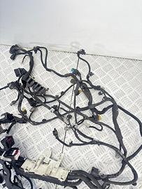 Impianto elettrico motore completo con fascio cavi principale, canaline rigide sagomate in plastica, guaine corrugate protettive, passacavi in gomma, staffe di fissaggio e numerosi connettori multipolari originali