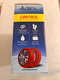 Vendo calze da neve Arcol taglia M NUOVE, mai aperte e mai usate, ovviamente omologate e all’interno della scatola, oltre alle calze, sono compresi un paio di guanti e una sacca impermeabile per inserirci dentro le calze dopo l’uso. Per vedere la misura delle gomme su cui si possono montare, nelle viarie foto, e presente una tabella con scritte tutte le misure. Per qualsiasi info non esitate a contattarmi.