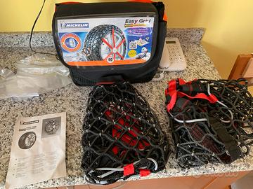 VendesiCalze da neve Michelin Easy Grip composite L12 adatte per pneumatici: 205/50-17 , 225/45-17, 235/45-17 Mai usate pari al nuovo, sono molto semplici da montare l'operazione si svolge in pochi minuti , sono omologate per l'Italia quindi nel periodo invernale io le tenevo nel baule come catene a bordo al posto di cambiare pneumatici estivi-invernali