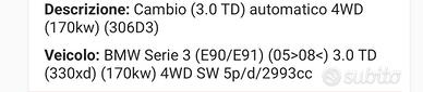 Cambio (3.0 TD) automatico 4WD (170kw) (306D3) Veicolo: BMW Serie 3 (E90/E91) (05>08<) 3.0 TD (330xd) (170kw) 4WD SW 5p/d/2993cc Non perdi tempo il cambio funziona perfettamente