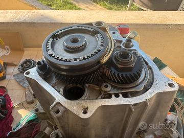 Smontato pezzo per pezzo, lavato internamente/esternamente, controllate le parti e oliato; richiuso con silicone alta temperatura tra zona campana frizione e scatola ingranaggi.