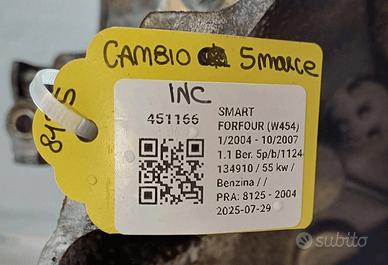cambio SMART FORFOUR 1.1 B 55 kw codice motore: 134910 anno 2004 (rif. interno 8125) KM 207.000
